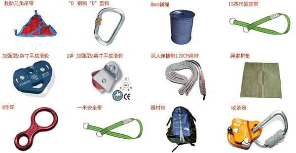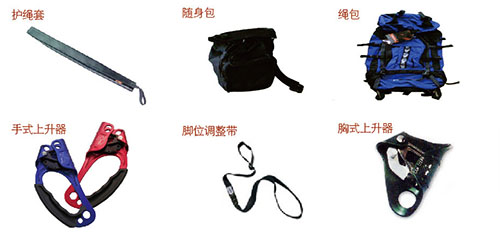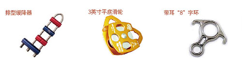 ·消防防墜落輔助設(shè)備星與安全嘶n安全吊帶、安全腰帶配套使用的承載部件的統(tǒng)稱,包括安全鉤、上升器、下降器、止鎖器、八字環(huán)、制動桿、墻角護(hù)輪和滑輪裝置等。